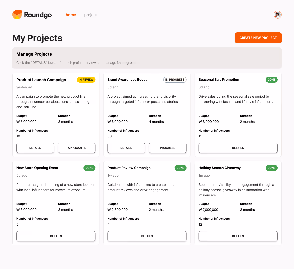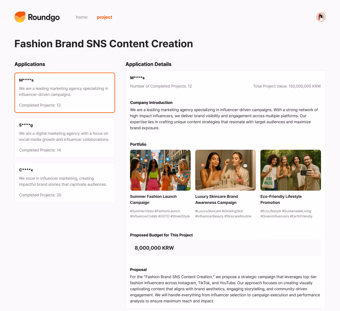 Roundgo manages all processes from the start of a project to payment for the best performance.